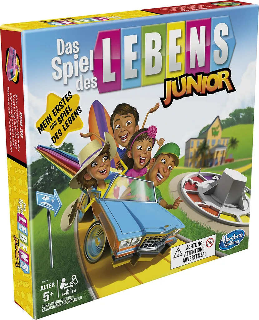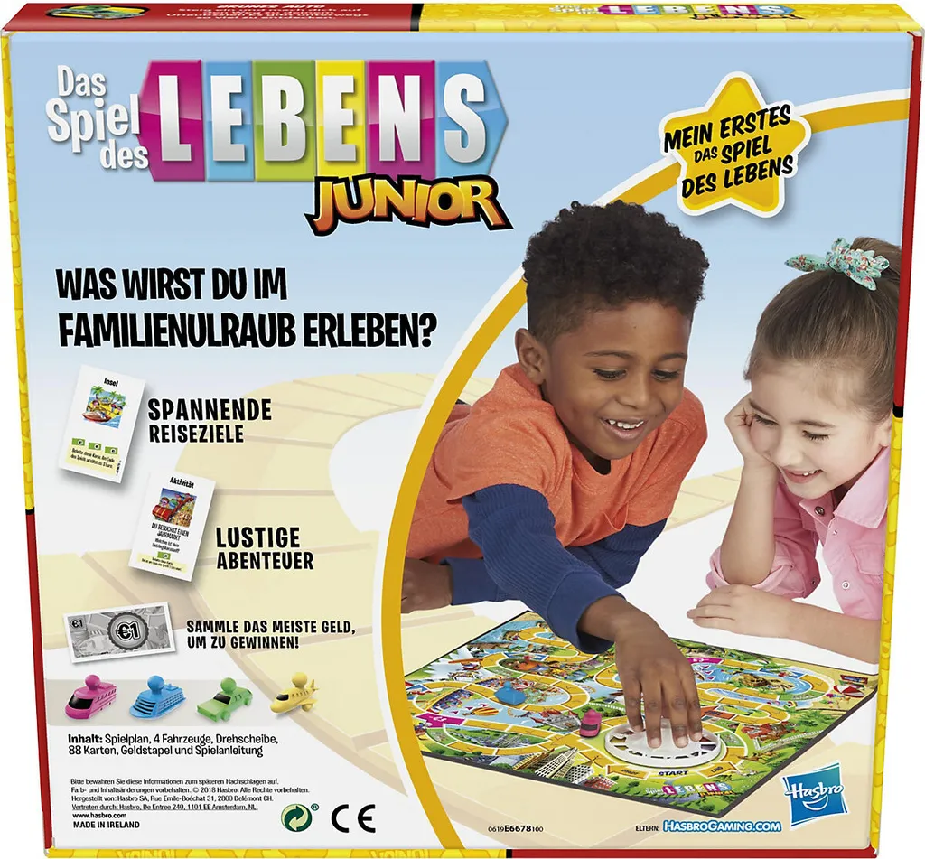 Den Spieleklassiker gibt es jetzt auch als altersgerechte Version für Kinder! Die farbenfrohen Elemente, vielen Überraschungen und Aufgaben vertreiben Langeweile und sorgen für ein tolles Spielvergnügen!Details:- Spiel des Lebens Junior- Anzahl Spieler: 2 -4 – farbenfrohe Spielfiguren
