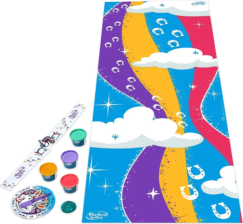DAS WITZIGE SPIEL UMS HÄUFCHEN: Wenn bunte Knet-Häufchen auf dem Einhorn-Pfad verteilt und die Scheibe gedreht wird, geht es rund. Dann gilt es, mit verbundenen Augen die vorgegebenen Schritte über den Weg zu laufen, aber nicht in die Haufen zu treten